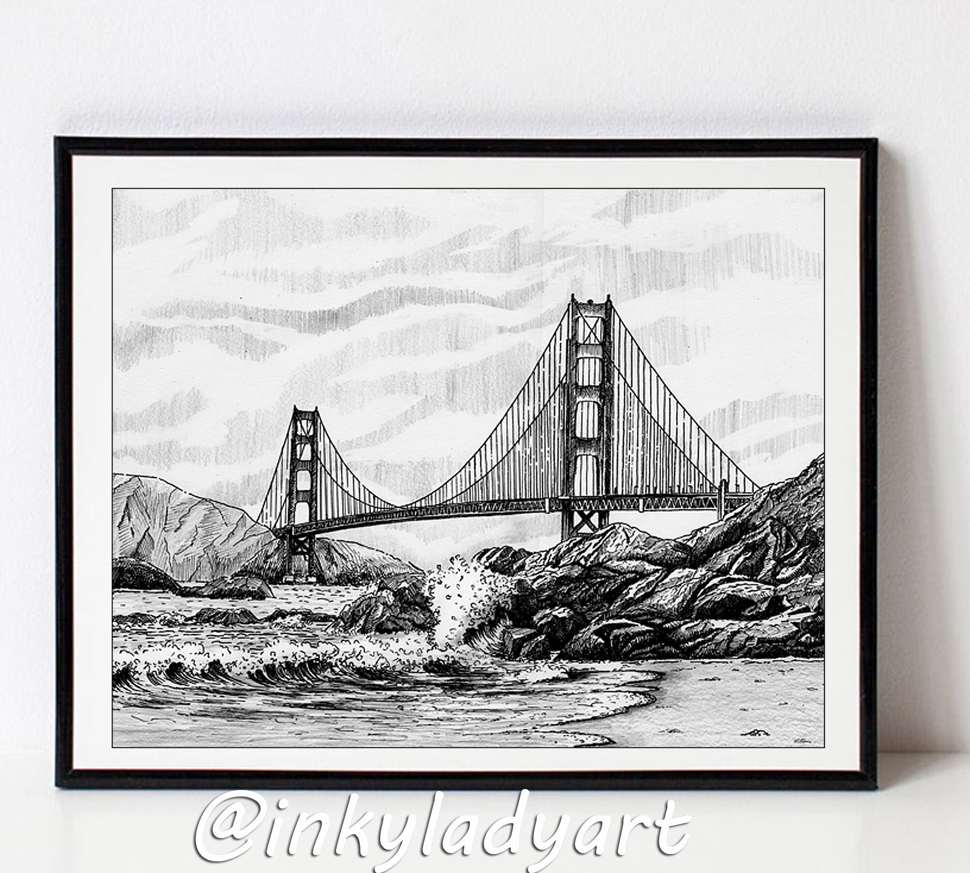San Francisco Golden Gate Bridge Print From Original Pen And Etsy